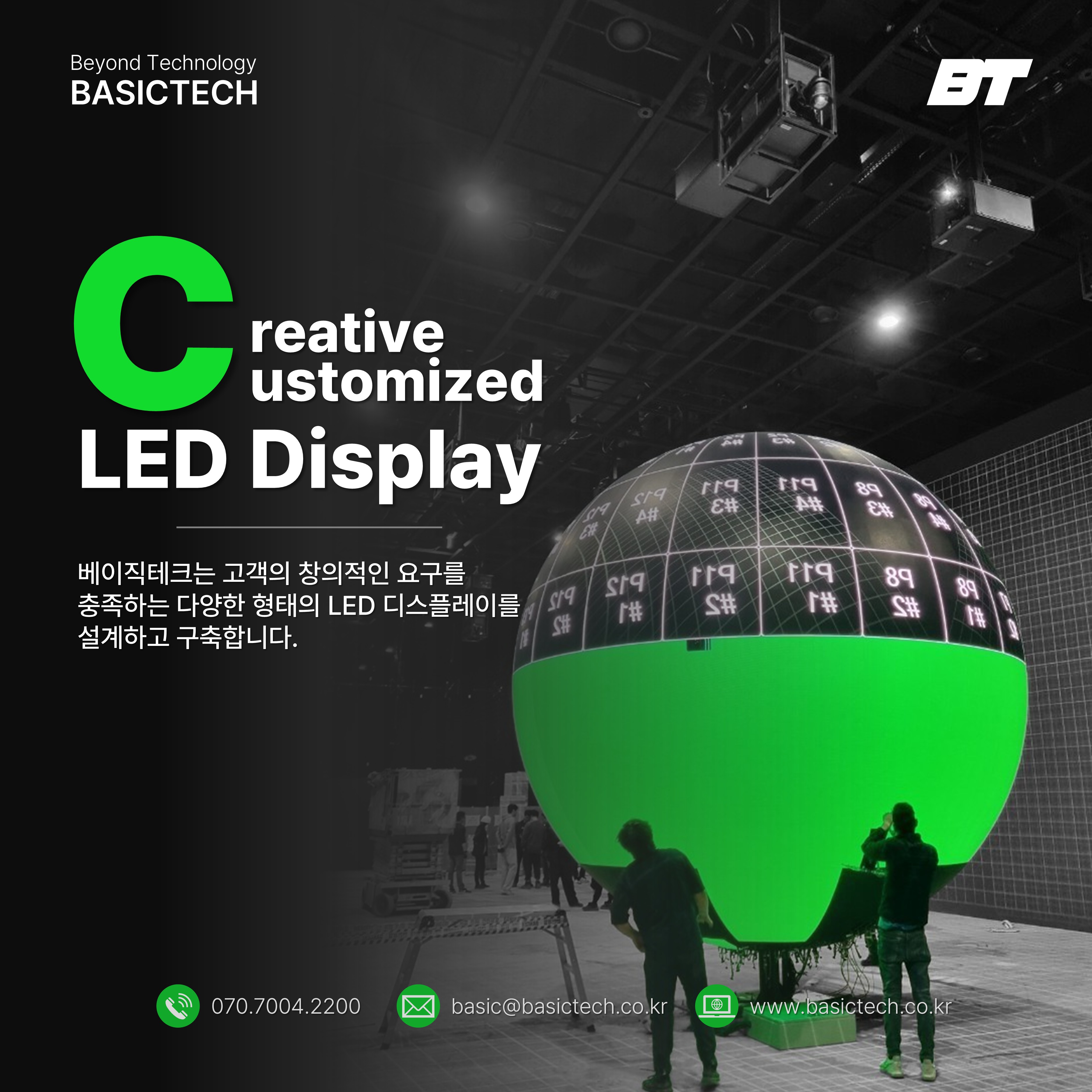 저희 베이직테크는 LED 디스플레이 설계 및 구축부터 미디어 파사드, 실감형 콘텐츠 제작, xR/ VP 스튜디오 운영, 그리고 전문 장비 임대에 이르기까지, 미디어 분야 전반에 걸친 종합 솔루션을 제공하고 있습니다. 그동안 베이직테크가 만들어온 혁신적인 이야기와 최신 뉴미디어 트렌드를 이제 뉴스레터를 통해 더욱 가깝게 전해드리고자 합니다.